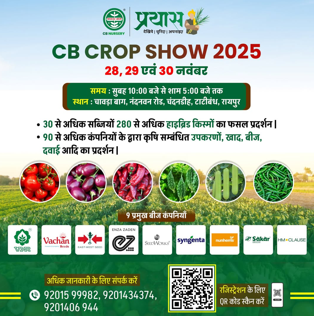 किसानों के लिए सुनहरा अवसर – रायपुर में होने जा रहा है CB Crop Show 2025, नई तकनीक और 280 से अधिक हाइब्रिड किस्मों का प्रदर्शन